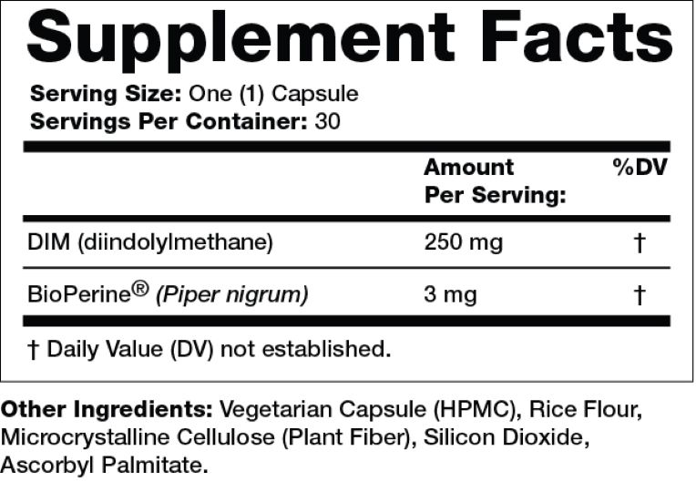 Olympian Labs DIM formula contains Bioperine, a patented ingredient added for its ability to increase nutrient absorption.
