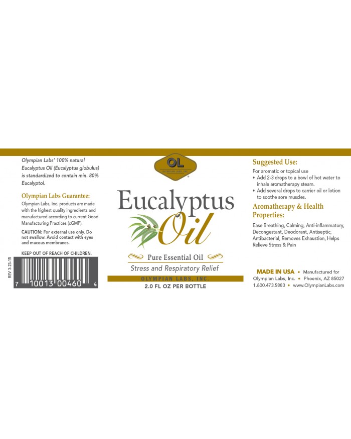 Olympian Labs 100% natural Eucalyptus Oil (Eucalyptus globulus) is standardized to contain min. 80% Eucalyptol.