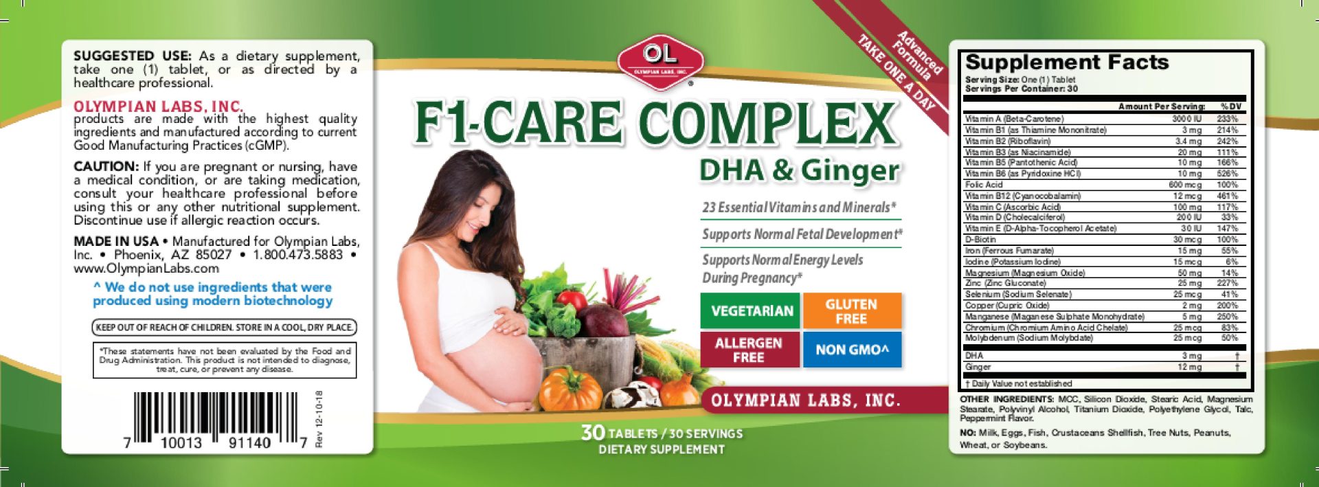F1 Care Complex with DHA & Ginger is a unique multi-vitamin to support normal energy levels during pregnancy, formulated for mom and baby.