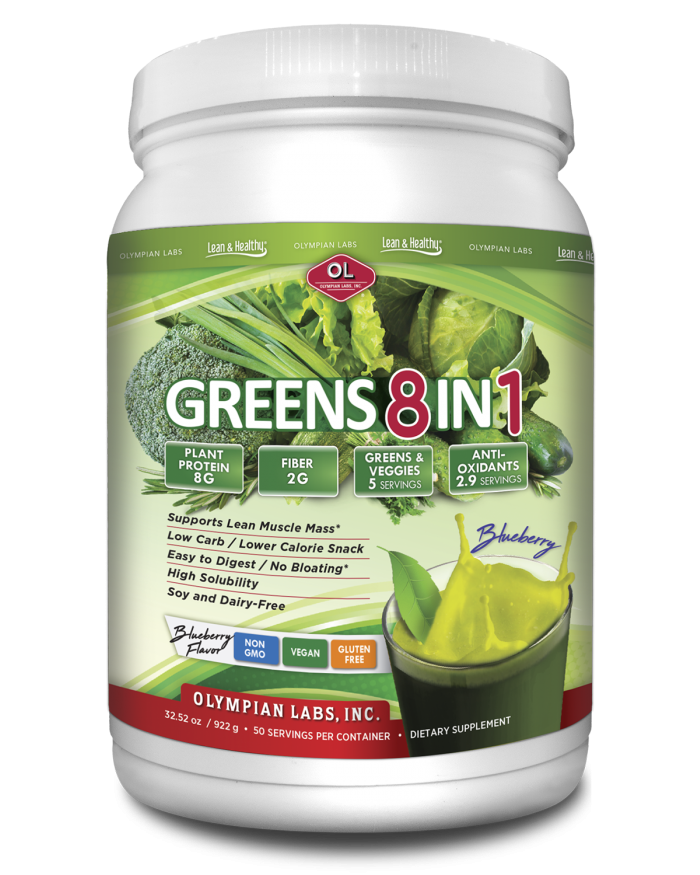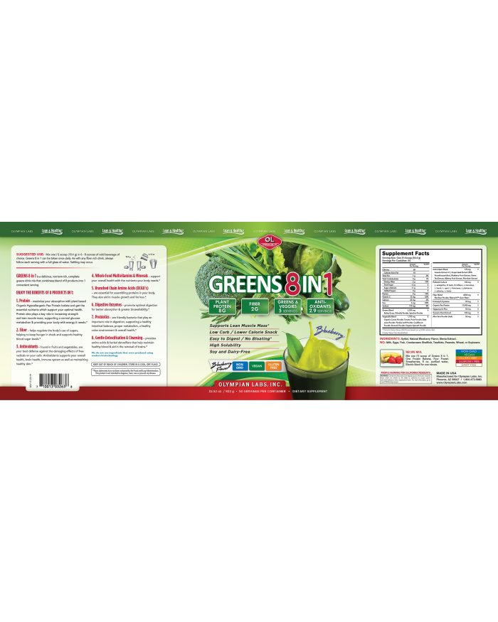 Olympian Labs Greens 8 in 1 is a delicious, nutrient-rich, complete greens drink mix that combines a blend of 8 products into 1 convenient serving.