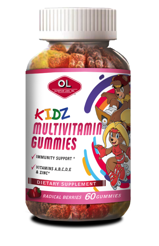 KIDZ Multivitamin Gummies are radical berry flavored and packed with Vitamin A, B, C, D, E and Zinc.