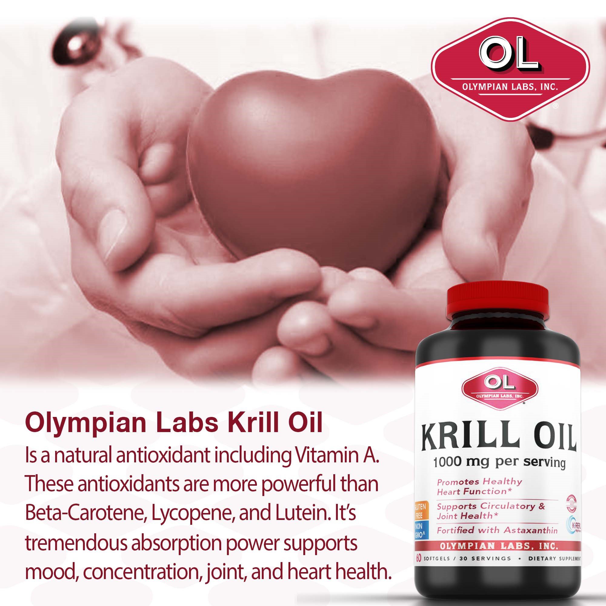 Olympian Labs Krill Oil contains natural antioxidants including Vitamin A. These antioxidants are more powerful than Beta-Carotene, Lycopene, and Lutein. Its tremendous absorption power supports mood, concentration, and heart health.