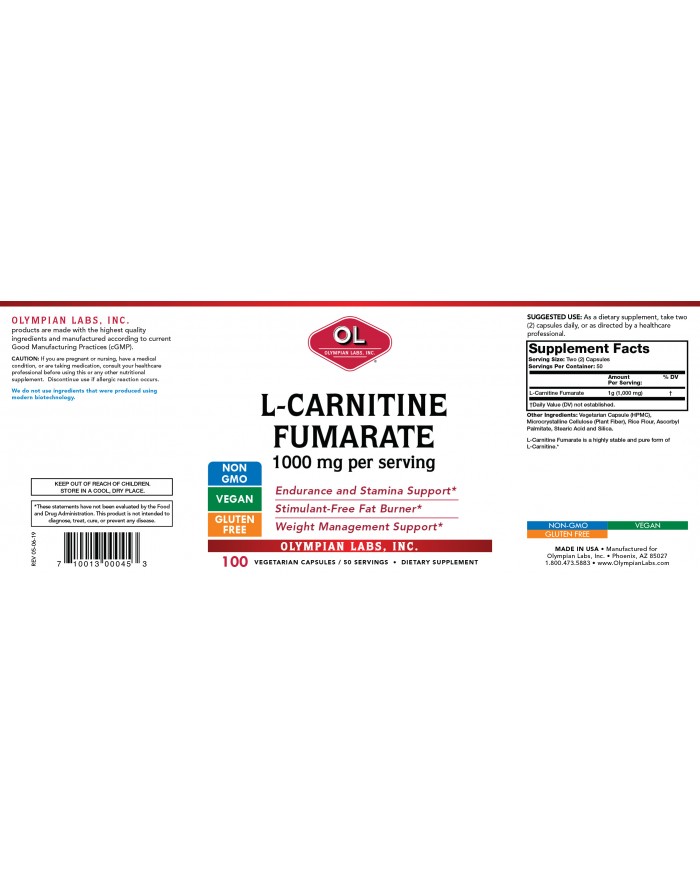 L-Carnitine is a naturally occurring amino acid metabolized from Lysine and Methionine. Together with exercise and a healthy diet, Olympian Labs L-Carnitine Fumarate may help fuel your exercise program for a lean body.
