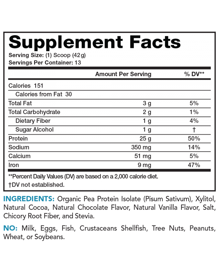 Lean & Pure Plant Protein – Chocolate is an organic, vegetable-based complete protein powder derived from yellow peas (Pisum sativum). Pea Protein is a great protein source that helps to build lean muscle mass, provides optimum nutrition, and keeps your hunger more satisfied than other protein powders. Its balanced amino acid profile with BCAAs is great for intense workouts and challenging your muscles.