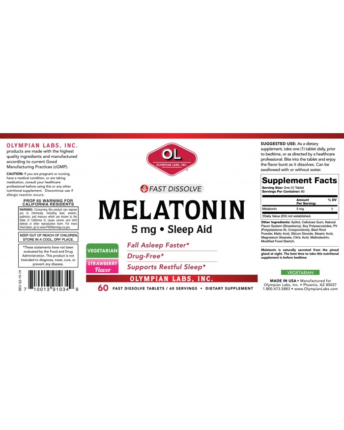 Melatonin is a hormone produced in the body and secreted at night. Taken as a dietary supplement, it is designed to help combat restless nights and may also be helpful for jet-lag and time zone changes. Olympian Labs Melatonin works to enhance the amount of natural melatonin produced by the body during sleeping hours.