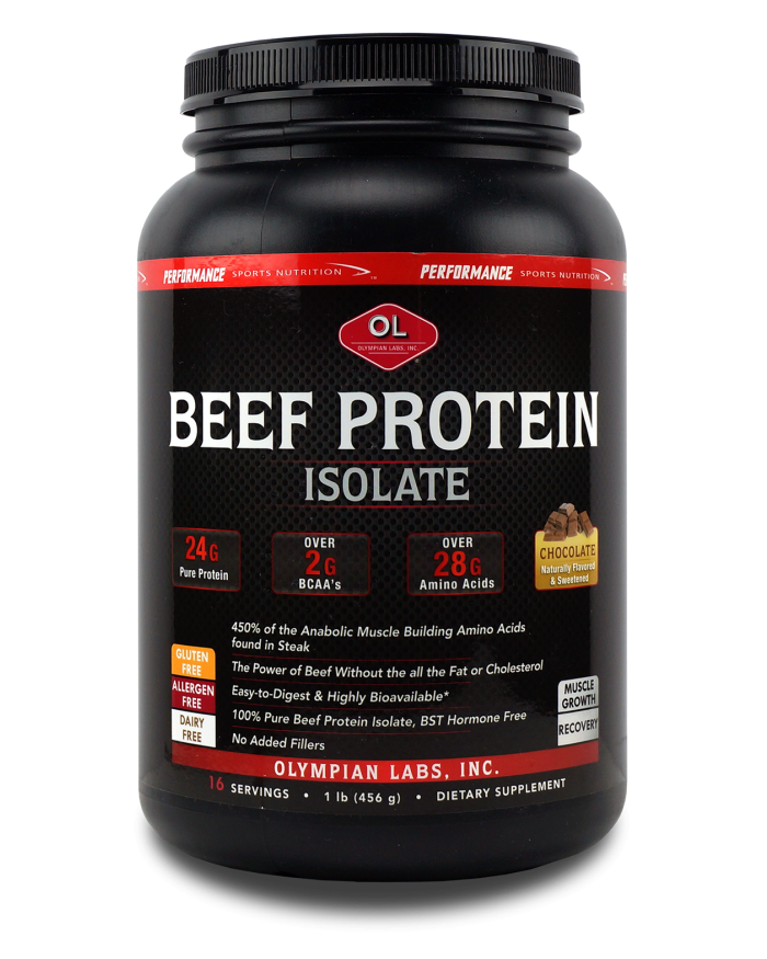 Olympian Labs Beef Protein Isolate maximizes the anabolic muscle building benefits of beef without adding unnecessary fats, lactose or sugars that are commonly found in other protein supplements.