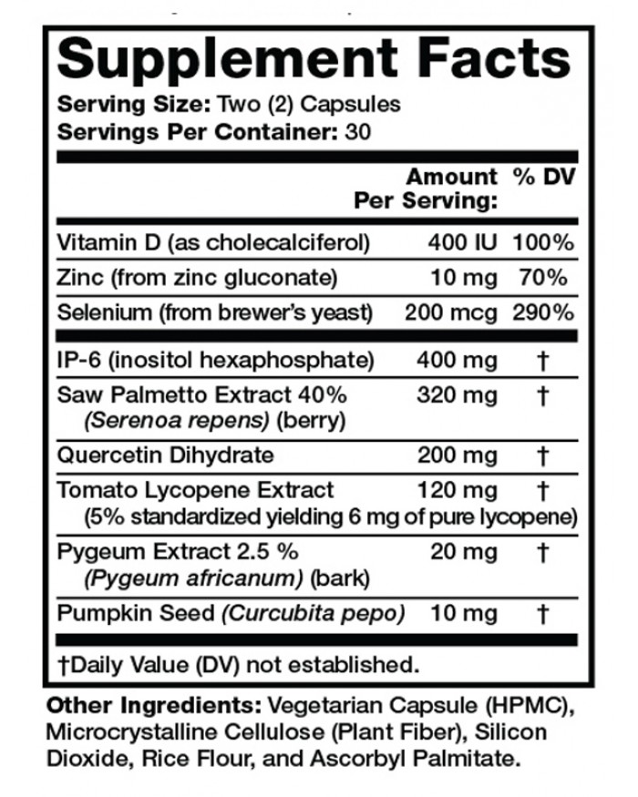 Olympian Labs ProsPlex for Men is a natural formulation containing nutrients that may support prostate health. Key ingredients include Saw Palmetto and Zinc, Pumpkin Seed and IP-6 (a vitamin-like substance found in animals and many plants) which act as a potent antioxidant.
