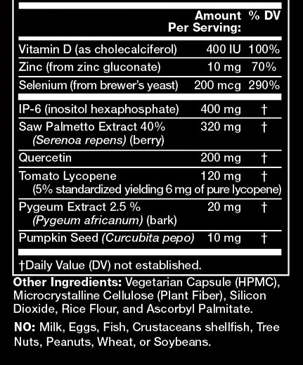 Olympian Labs ProsPlex for Men is a natural formulation containing nutrients essential for male prostate health. Key ingredients include Saw Palmetto, Zinc, Pumpkin Seed and IP-6 (a combination of inositol (a B vitamin) and inositol hexaphosphate) which acts as a potent antioxidant.