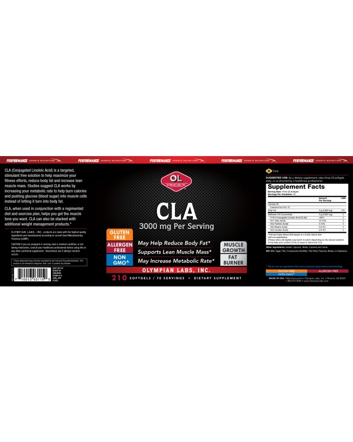Olympian Labs CLA (Conjugated Linoleic Acid) helps maximize your fitness efforts to help you get the muscle tone you are looking for.