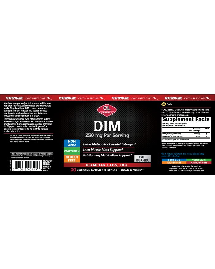 Olympian Labs Diindolylmethane (DIM) may help convert strong and damaging forms of estrogen into weaker forms so your testosterone is protected from harmful estrogen and your balance of testosterone to estrogen ratio is supported.
