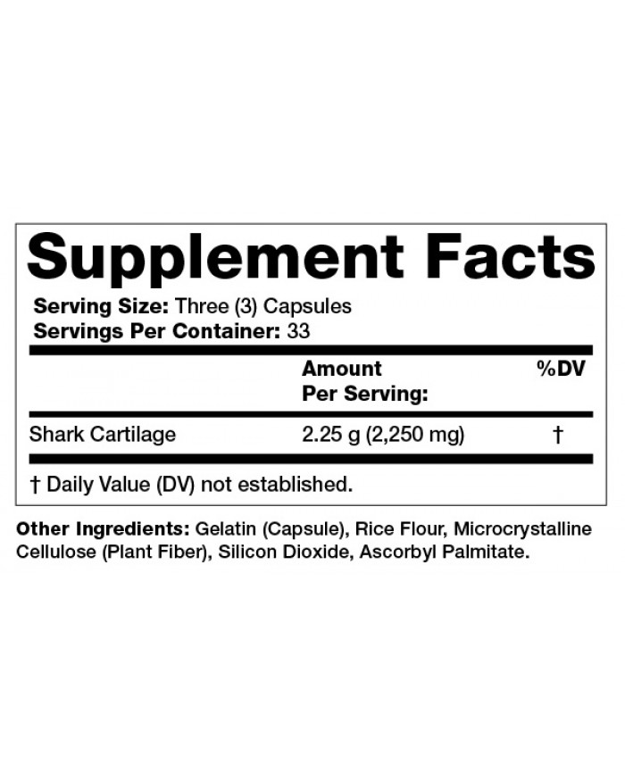 Shark Cartilage is the tough material that composes a sharks skeleton and contains naturally-occurring bioavailable glucosamine and chondroitin sulfate that are more readily absorbed. Additional naturally-occurring and beneficial elements include: collagen, essential and non-essential amino acids, and minerals.
