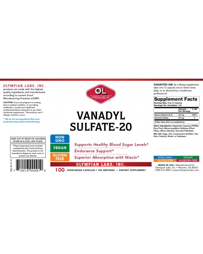 Olympian Labs Vanadyl Sulfate Benefits Include: