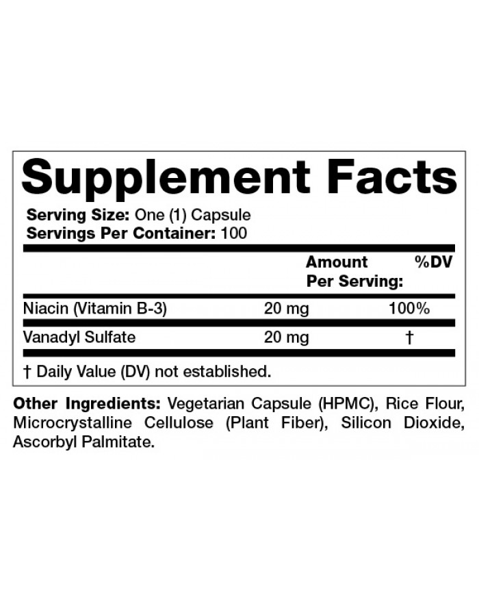 Glucose levels play a major role in how our bodies function. Vanadyl Sulfate is a key ingredient that helps manage your healthy glucose levels. Niacin has also been added to the formula to aid in superior absorption.