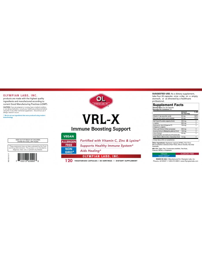 Olympian Labs VRL-X is formulated to give your body the extra help it needs with its key ingredient, Lysine supporting the immune system.